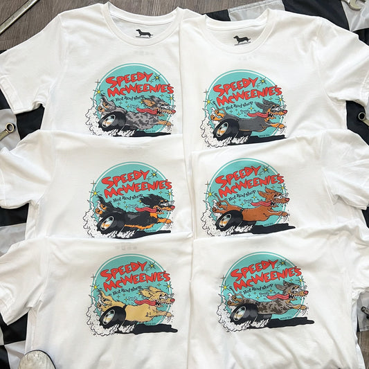 Speedy McWeenie's Hot Rod Shop Tee Shirt (Long-Haired Various Coats)